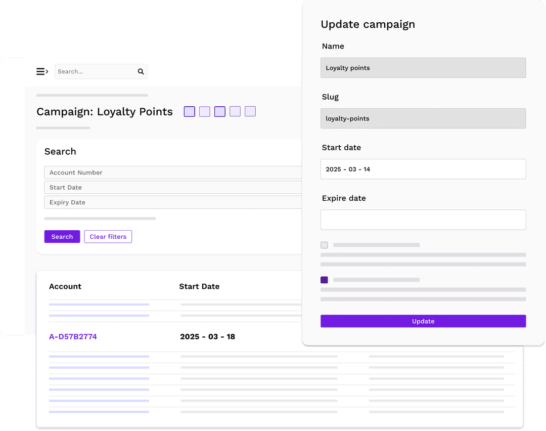 Build your own rewards logic by configuring enrollment, points and redemption rules