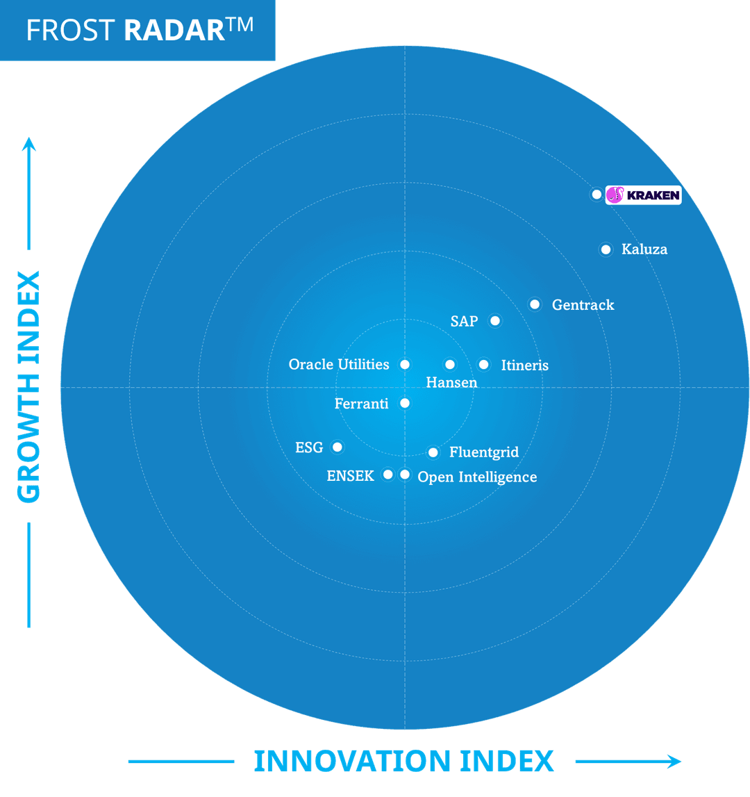 "Kraken retains the top spot on the Frost RadarTM and is arguably the one to beat right now. Its growth in the past few years has been nothing short of exceptional, with more and more utilities from across the US, Europe and Australia opting for the Kraken operating system. Kraken is one of the leading companies on innovation and the developments in its utility-grade AI, flexibility management, C&I and field operations offerings are all testament to this."